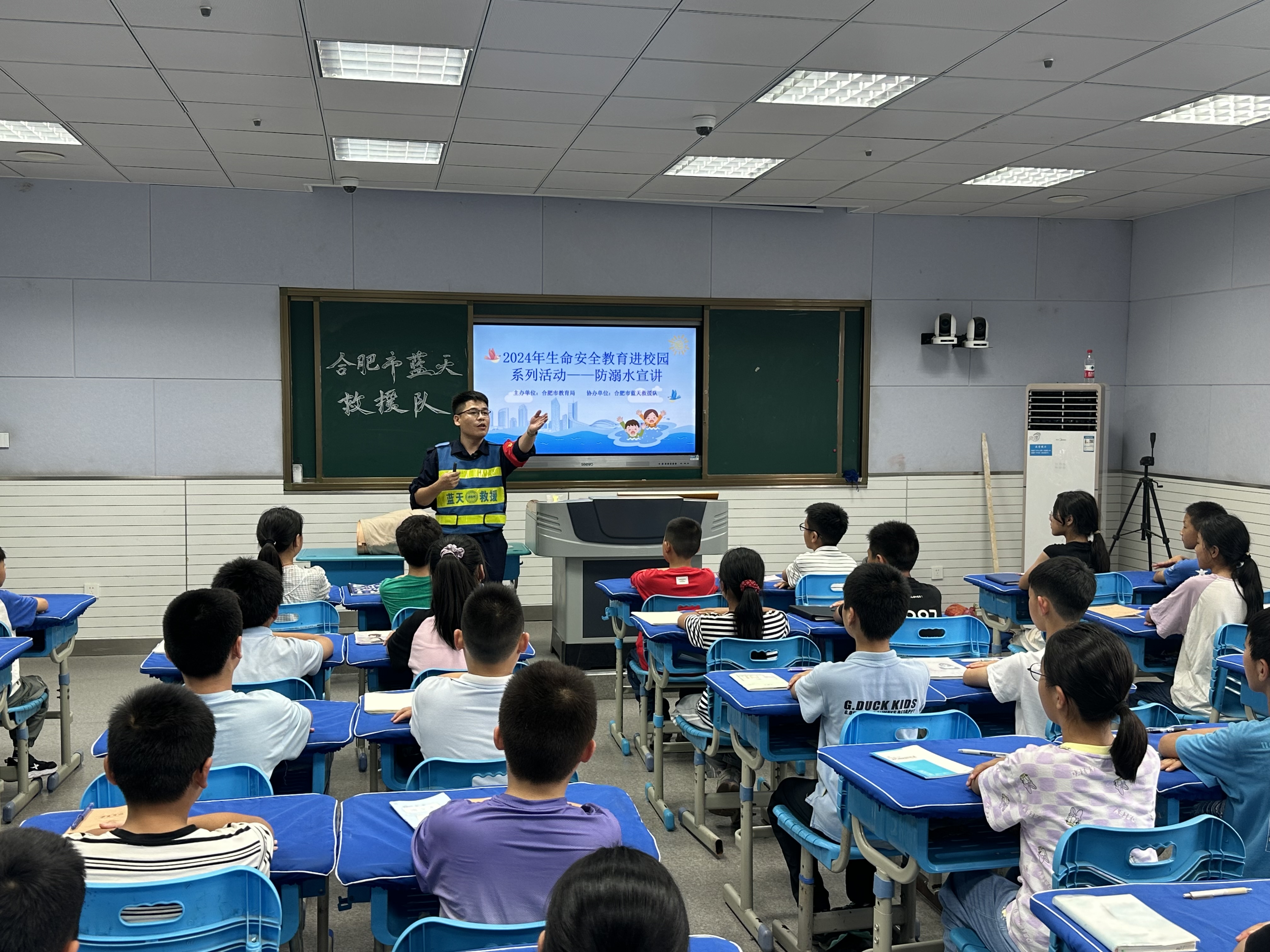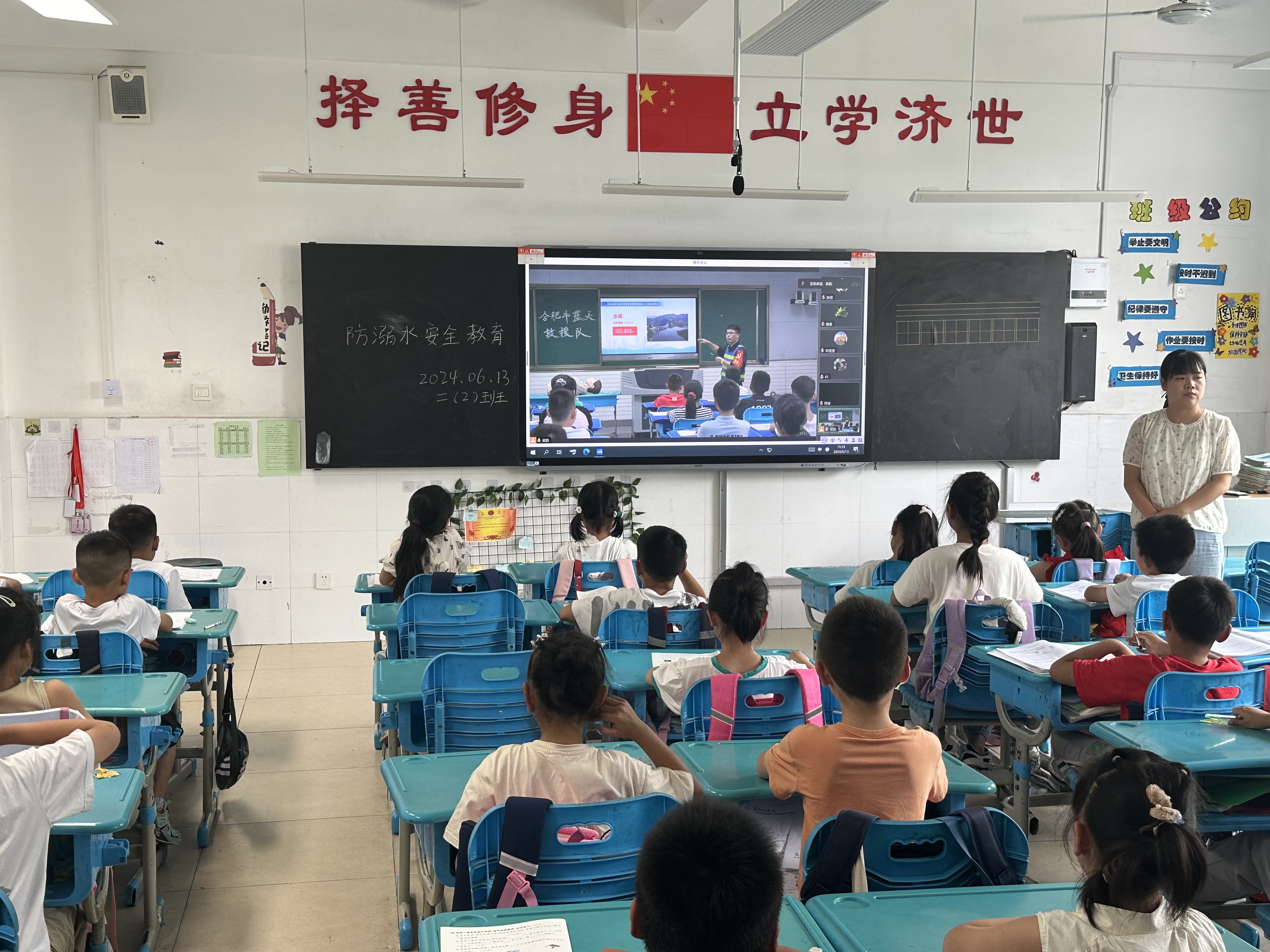 为切实加强学生防溺水安全教育,让学生牢固树立“生命至上,安全第一”的理念,提高学生的自救互救能力,6月13日下午,合肥一六八新桥学校邀请合肥市蓝天救援队走进校园开展防溺水安全教育宣讲活动。本次宣讲采用“现场加直播”的方式,覆盖全体学生。 蓝天救援队主讲王老师和队员从“远离危险水域”、“游泳注意事项”、“如何营救溺水小伙伴”、“不慎落水如何自救”等各个方面普及了防溺水安全知识。通过互动交流、场景模拟等方式,同学们掌握了相关安全知识和自我保护方法,同时也认识到溺水的危险性、“喊、叫、伸、抛”四招铭记在心。同学们增强了避险意识,收获了防溺水的技巧。 在活动现场,老师们现场利用仿真模型演示如何施救溺水人员,手把手地教授心肺复苏急救的方法,并在专业人员的指导下,利用仿真模型演练。在场师生印象深刻,对生命更多一层敬畏。 防溺水知识问答环节更是将宣讲活动气氛推到了高潮。同学们积极举手,踊跃参与,王老师也给回答问题的同学送出了蓝天救援队的小礼物。 合肥一六八新桥学校高度重视防溺水工作,通过致家长一封信、主题班会课、1530安全提示、国旗下讲话、电子屏宣传和公众号推送等多种方式,进行防溺水教育,呼吁家长履行监管责任。生命只有一次,每一天的生活都是现场直播,容不得反复彩排。此次防溺水安全知识宣讲,不仅为我校师生普及了防溺水知识,还在大家心中树立起一道安全防线,让安全意识的警钟始终长鸣!希望通过学校、家庭和社会三方通力合作,确保学生平安健康快乐地度过盛夏! (供稿:总务处 初审:张欣 复审:徐春阳 终审:饶哲)