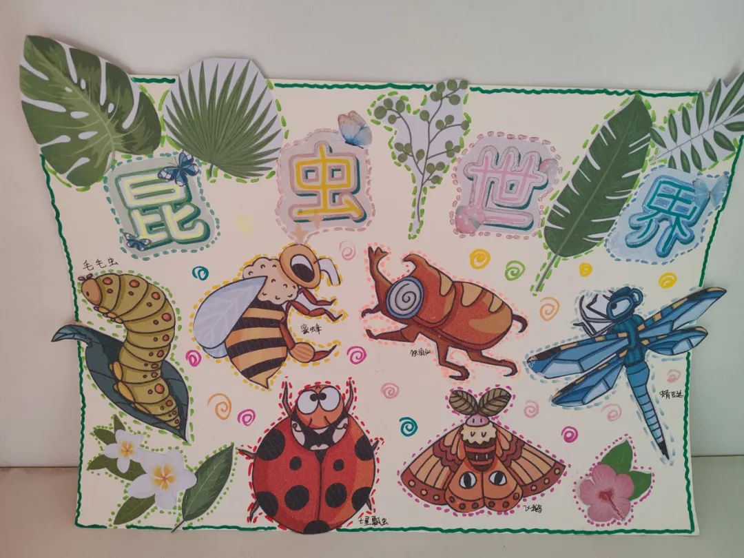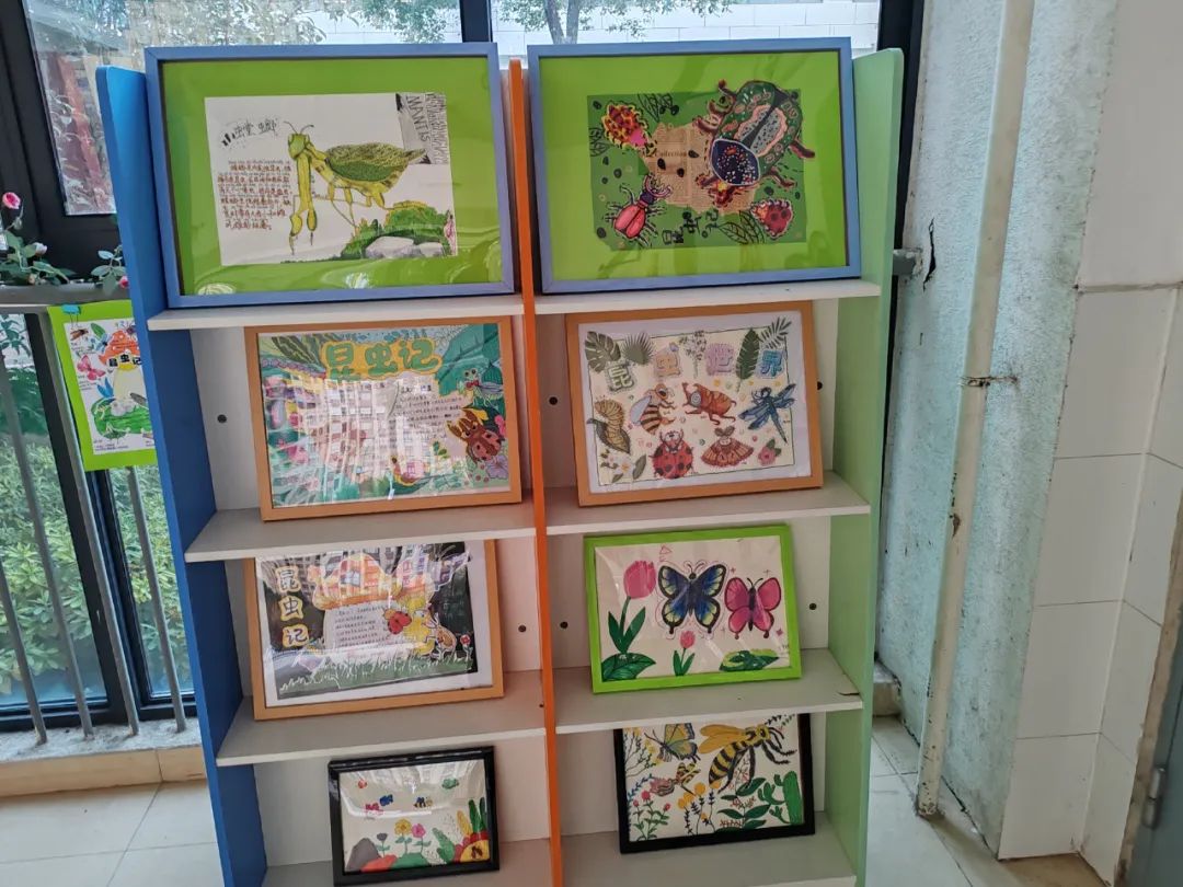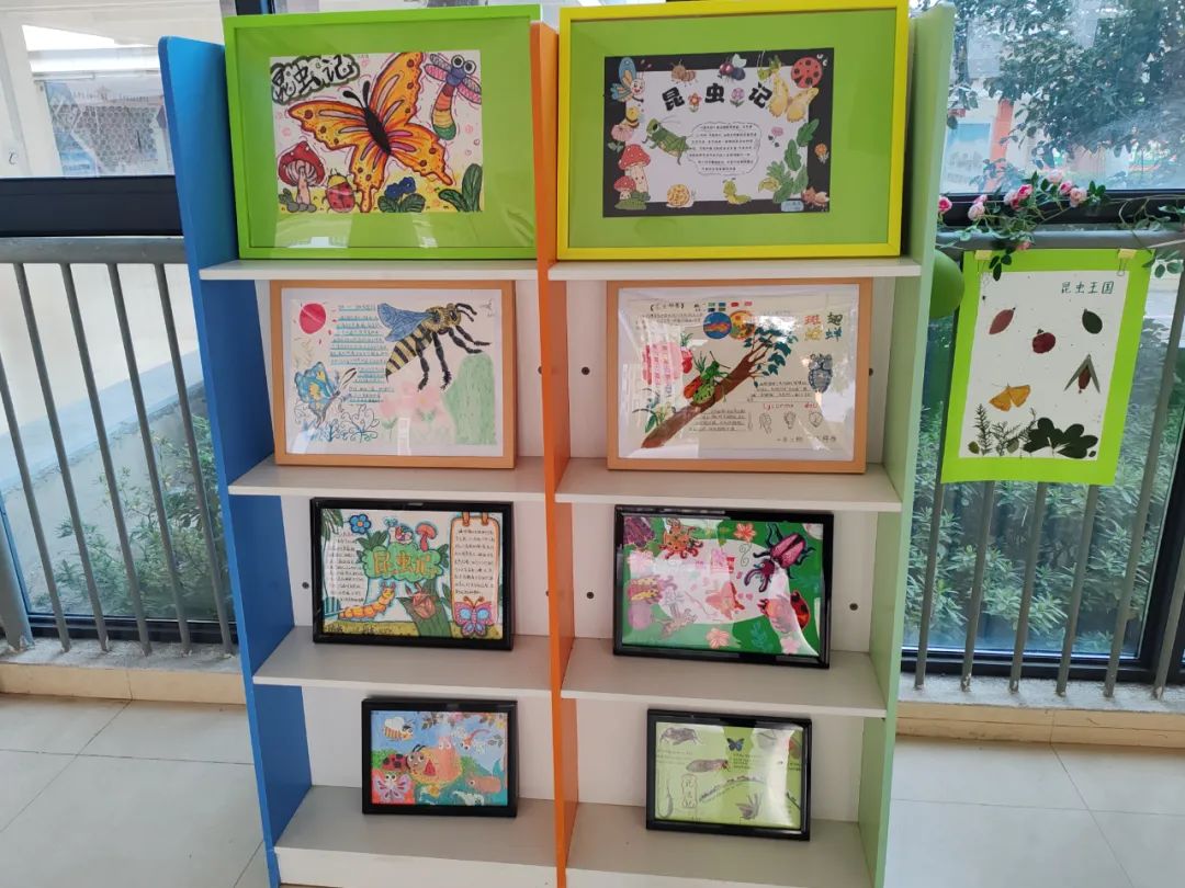 各班级通过实践活动精心设计了昆虫主题课程,以跨学科项目式学习教育理念为主导,以科学探究为主线,协同科学、语文、美术、音乐、劳动等学科,让学生观察昆虫,查阅资料,了解昆虫身体结构,生活习性,用画笔,文字记录下来,并向家长推介《昆虫记》绘本读物,激发学生阅读兴趣。